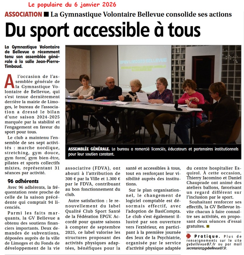 Lu dans le Populaire du 2 septembre 2025 : la rentrée de l'EPGV Bellevue